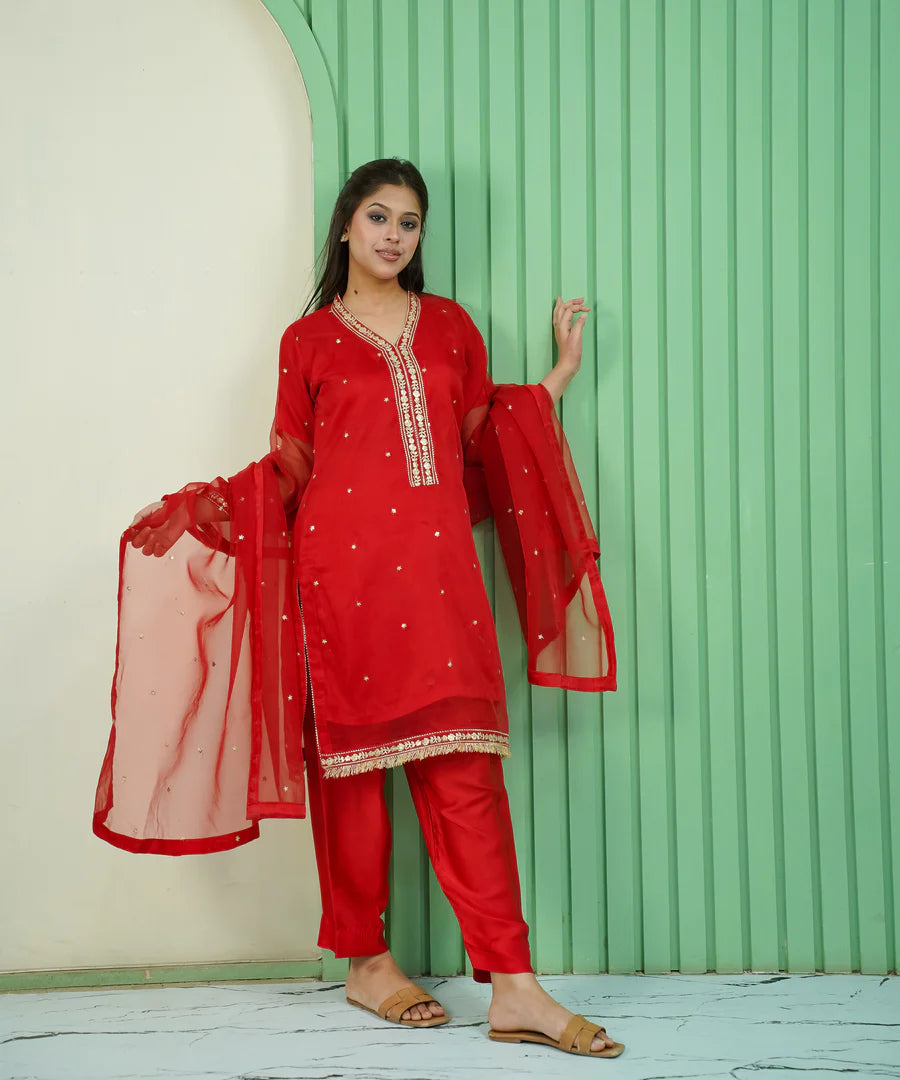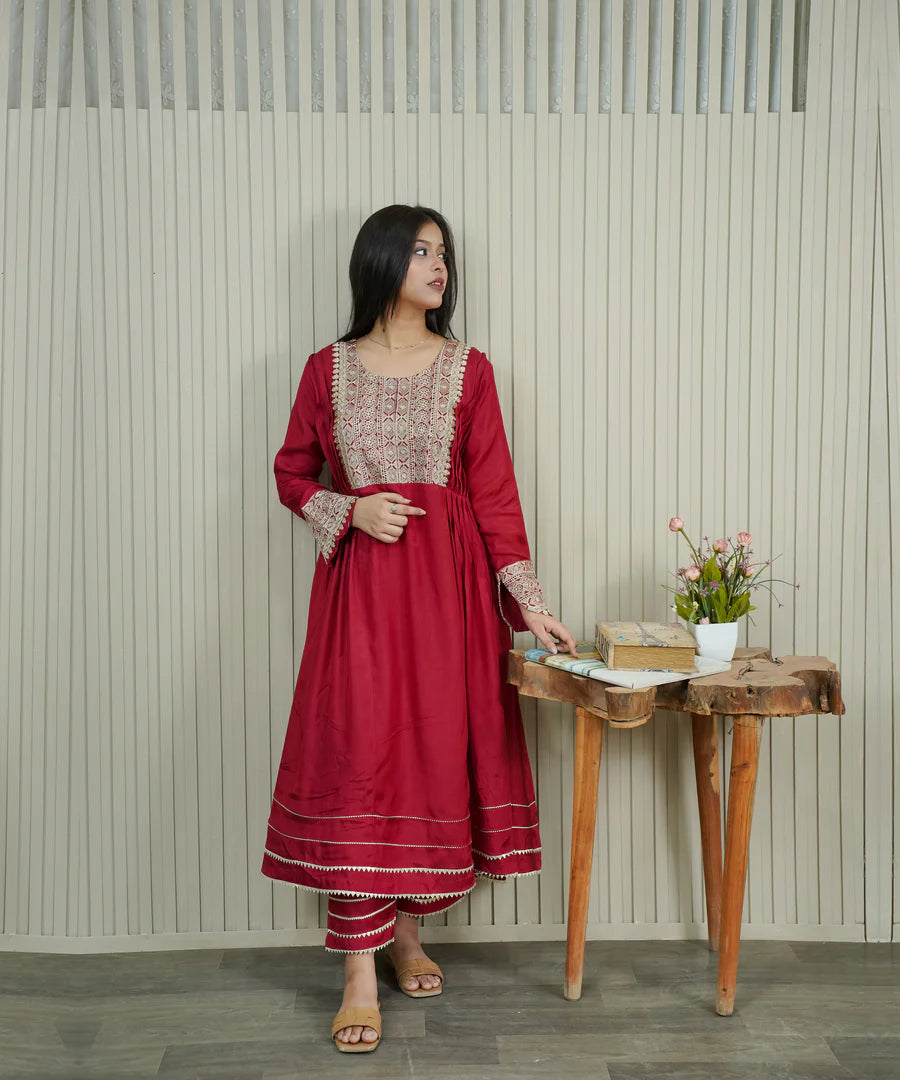 Step into effortless sophistication with this stunning Ruby Glow Embroidered Dress, designed for women who...