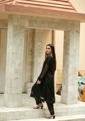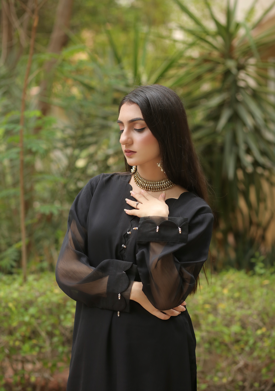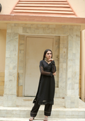 Crafted in a lightweight, breathable fabric, the kurta drapes beautifully on the body, offering comfort without compromising style. The sheer full sleeves add a soft, modern contrast, while the minimal button detailing at the front keeps the look refined and versatile. Paired with matching trousers, this set delivers a perfectly balanced silhouette—relaxed yet structured.
